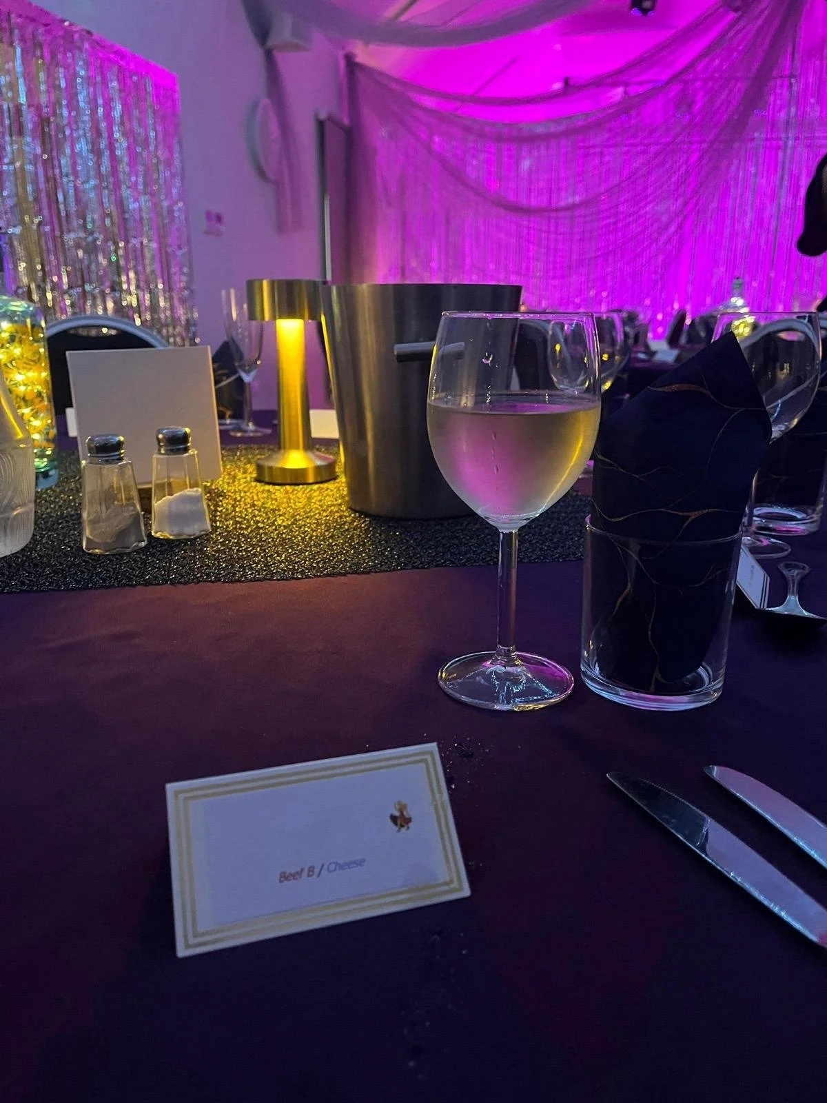 With lots of sparkles in evidence as well as bow ties and a random kilt and sporran combo, our well dressed guests were treated to a very tasty two course meal in the wonderfully appointed Wren Hall, and were then encouraged to move into our “nightclub” area and get onto the dance floor to strutt their stuff courtesy of the silent disco. This proved to be a massive hit for all involved and was an experience to be remembered (and talked about constantly).